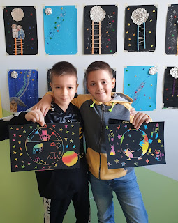 Međunarodni projekat: „Recite glasno, neka čuju ljudi, kakve mogućnosti svemir nudi!“ Naziv zadatka: Šapat Svemira Ime i prezime nastavnika: Jasmina Janić Broj učenika, razred: 20 učenika, II/2 Naziv i mjesto obrazovne ustanove: Osnovna škola „Majur“, Majur Država: Srbija Cilj zadatka: upoznati učenike s prvim letom ljudi na Mesec i njegovim uticajima na živi svet planete Zemlje Kratak sadržaj: „Muzika je jedinstven način da razumemo svemir, jer je ona, kao i svemir, u svima nama!“ Ovako je svoje vanvremensko stvaralaštvo u jednom od retkih intervjua opisao Vangelis, čovek koji je započeo revoluciju u elektronskoj muzici, izbacujući svake godine po jedno remek-delo inspirisano svemirskim temama. Slušanje: Vangelis - Elementarijum - razgovor o prvom dolasku ljudi na Mesec - razmenjivanje ideja o prometnim sredstvima kojima se može doći na Mesec (ideje učenika) - sklapanje zamišljenog prometnog sredstva od lego kockica kojim bi se moglo otputovati na Mesec - umetničko viđenje Meseca Ostvareni ishod: - upoznati učenike s prvim letom ljudi na Mesec i njegovim uticajima na živi svet planete Zemlje - učenici su razvijali znatiželju, kreativnost i maštovitost -prezentovanje radova